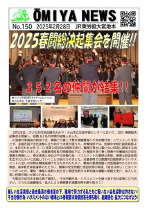 労働密度が増すばかりの現場の奮闘と苦しい生活実感に報いない回答に終始した経営姿勢に対し 2025JR総連春闘をたたかい培った職場の組織力を更に強化し、最後までたたかい抜く大宮地本見解